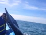Tekneyle gezintiye çıkan turist kafilesi, dev balina ile karşılaştı.Kafileden bir genç kız, dev balinayı görünce resimını çekmeye çalıştı. O sırada, resim çektirmek istemeyen balina, dev kuyruğu ile teknedekilere tokat atarcasına bir hareket yaptı.