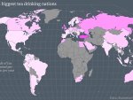Yukarıdaki harita ülkelerdeki 1 kişinin ortalama çay tüketimini göstermektedir. Buna göre; Türkiye Cumhuriyeti, İrlanda ve Birleşik Krallık dünyanın en çok çay tüketen ülkeleridir.